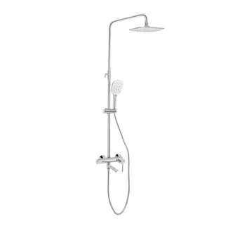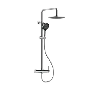 Душова система термостатична Qtap Sloup 57103ONC - естетичне та практичне рішення в одному виробі. Вона виготовлена з якісної латуні, нержавіючої сталі та міцного пластику, що не підпадають під вплив корозії. Система виконана з хромованою глянцевою поверхнею, обладнана змішувачем, а також двома видами душу - ручним та верхнім. Перемикання між споживачами здійснюється за допомогою дивертора на корпусі змішувача. Виріб стане яскравим акцентом в інтер'єрі будь-якої ванної кімнати.
