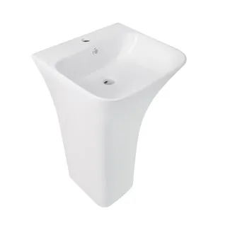 Підлогова раковина Qtap Crow QT0511G315WN виготовлена з якісної кераміки білого кольору з отворами для змішувача і переливу. Виріб являє собою моноблок із раковини та п'єдесталу. Завдяки оригінальному зовнішньому вигляду раковина здатна доповнити будь-який сучасний інтер'єр. Вона встановлюється пристінним способом і фіксується за допомогою кріплень, які входять до комплектації.