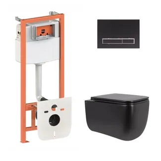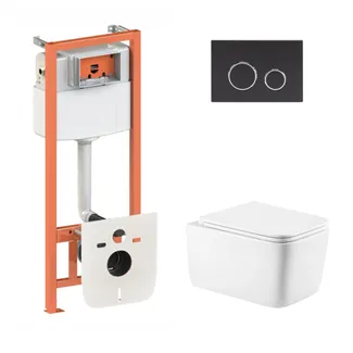 Готове рішення Qtap для ванної кімнати: підвісний унітаз Gemini Ultra Quiet 530х365х373 + комплект інсталяції Nest 4 в 1 (лінійна клавіша Matt Black)