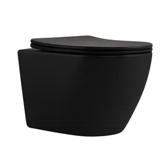 Підвісний унітаз Qtap Robin New Ultra Quiet QT13332381АSMB у матовому чорному кольорі поєднує в собі сучасний дизайн, функціональність і зручність. Компактні розміри ідеально підходять для будь-якого простору, а сидіння Slim з дюропласту з функціями безшумного закривання і швидкого зняття забезпечує комфорт і простоту догляду. Технологія Ultra Quiet гарантує тихий змив, створюючи додаткову зручність у використанні. Стильний зовнішній вигляд, довговічні матеріали та продумані деталі роблять цей унітаз ідеальним вибором для сучасних інтер'єрів.