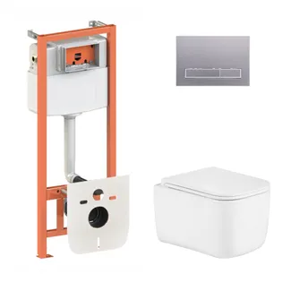 Готове рішення Qtap для ванної кімнати: підвісний унітаз Gemini Ultra Quiet 530х365х373 + комплект інсталяції Nest 4 в 1 (квадратна клавіша Satin)