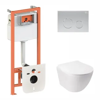 • Готове рішення Qtap для ванної кімнати: підвісний унітаз Jay Rimless 520х360х320 + комплект інсталяції Nest 4 в 1 (кругла клавіша Chrome)