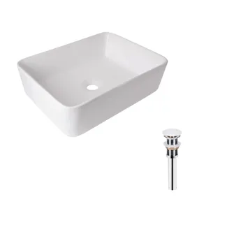 Комплект Qtap Tern: Раковина накладна прямокутна White + Донний клапан PU02: Цей комплект пропонує елегантну білу раковину і донний клапан PU02. Компактна прямокутна раковина гармонійно впишеться у ванну кімнату будь-якого стилю, забезпечуючи функціональність і легкість у догляді.
