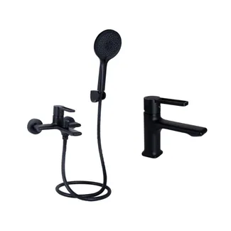 Комплект змішувачів Qtap Taurus: набір змішувачів для ванни та раковини в елегантному чорному кольорі. Забезпечує гармонійне поєднання стилю та функціональності, підходячи як для сучасних, так і класичних інтер'єрів.