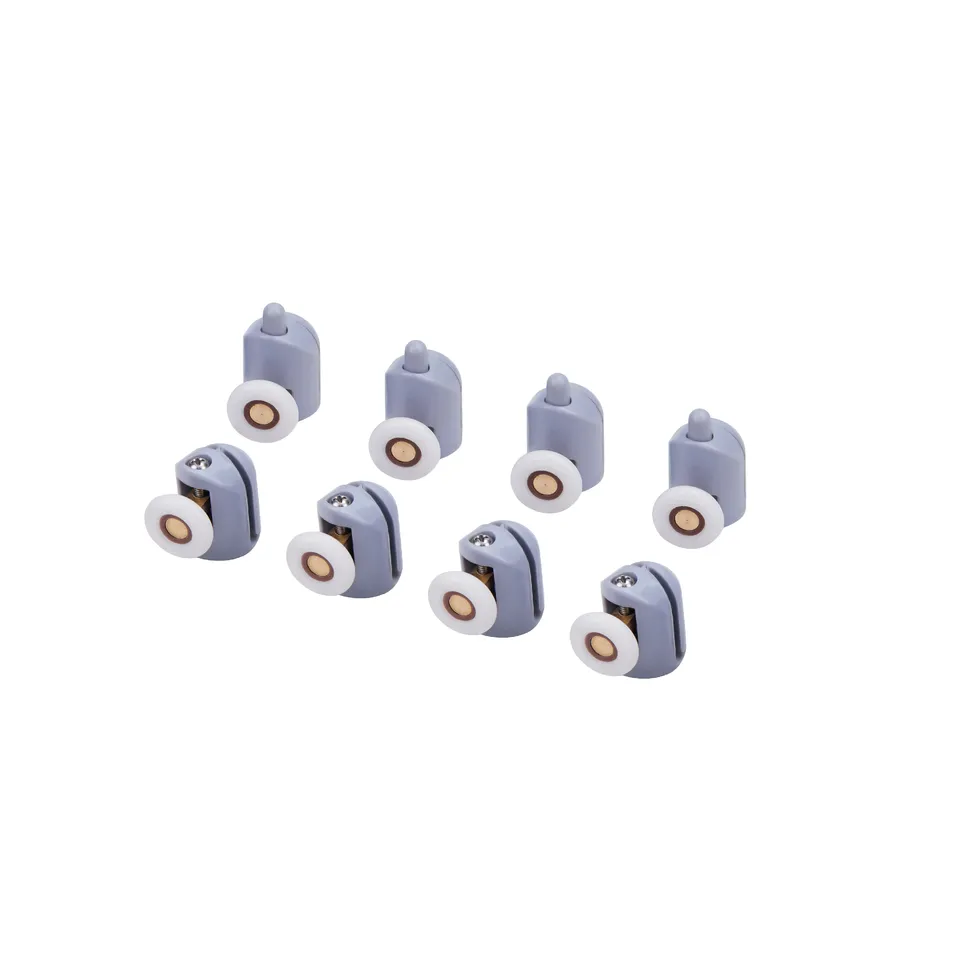 Комплект подвійних роликів Qtap PISCES CRM призначений для забезпечення надійного та плавного руху дверей у душових кабінах із розсувною системою. У комплект входять 4 хромовані ролики — 2 верхні та 2 нижні, які працюють у парі, створюючи стабільність і рівне ковзання дверей. Верхні ролики витримують основне навантаження та забезпечують утримання дверей на потрібній висоті, тоді як нижні ролики допомагають коригувати хід дверей та запобігають перекосам.