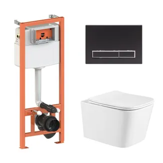 Готове рішення Qtap для ванної кімнати: підвісний унітаз Crow Ultra Quiet 520x360x290 + комплект інсталяції Nest 4 в 1 (кругла клавіша Matt Black)