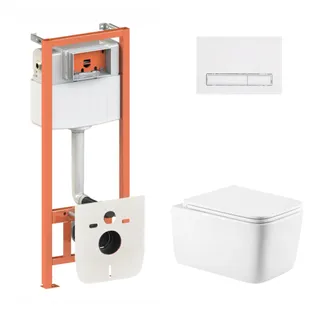 Готове рішення Qtap для ванної кімнати: підвісний унітаз Gemini Ultra Quiet 530х365х373 + комплект інсталяції Nest 4 в 1 (квадратна клавіша Satin)