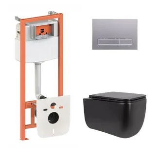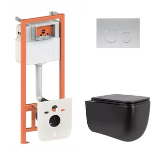 Готове рішення Qtap для ванної кімнати: підвісний унітаз Gemini Ultra Quiet 530х365х373 + комплект інсталяції Nest 4 в 1 (кругла клавіша Matt Black)