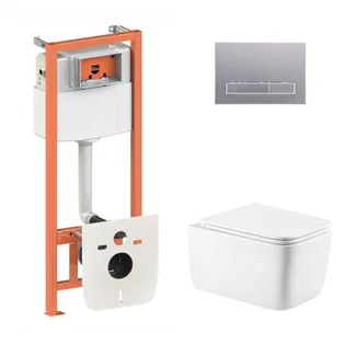 Готове рішення Qtap для ванної кімнати: підвісний унітаз Gemini Ultra Quiet 530х365х373 + комплект інсталяції Nest 4 в 1 (квадратна клавіша Satin)