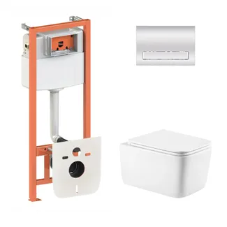 Готове рішення Qtap для ванної кімнати: підвісний унітаз Gemini Ultra Quiet 520×360×350 + комплект інсталяції Nest 4 в 1 (квадратна клавіша Chrome)