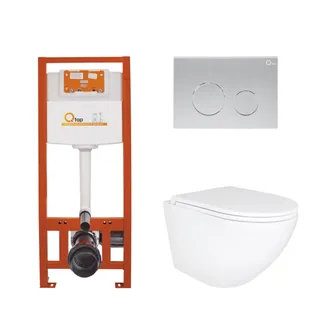 • Готове рішення Qtap для ванної кімнати: підвісний унітаз Robin Ultra Quiet 520x365x365 + комплект інсталяції Nest 4 в 1 (кругла клавіша Chrome)