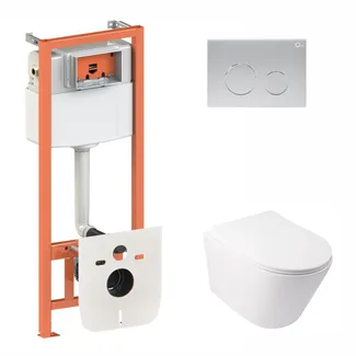• Готове рішення Qtap для ванної кімнати: підвісний унітаз Swan Rimless 520х360х320 + комплект інсталяції Nest 4 в 1 (кругла клавіша Satin)