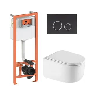 • Готове рішення Qtap для ванної кімнати: підвісний унітаз Taurus Ultra Quiet 485×360×350 + комплект інсталяції Nest 4 в 1 (кругла клавіша Matt Black)
