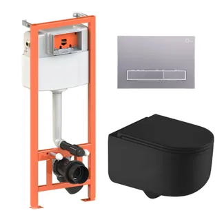 Готове рішення Qtap для ванної кімнати: підвісний унітаз Taurus Ultra Quiet 490x360x380 + комплект інсталяції Nest 4 в 1 (кругла клавіша Matt Black)