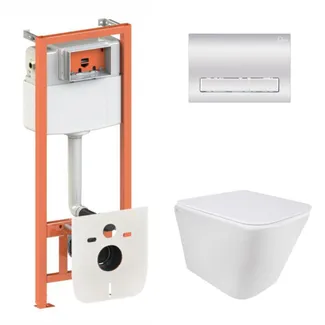 Готове рішення Qtap для ванної кімнати: підвісний унітаз Tern Ultra Quiet 525x345x360 + комплект інсталяції Nest 4 в 1 (квадратна клавіша Chrome)