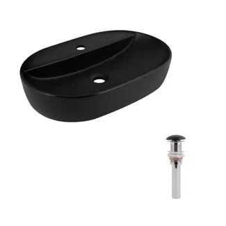 Комплект Qtap Scorpio: Овальна накладна раковина у кольорі Matt Black підійде для сучасних монохромних інтер'єрів. Матова поверхня має ефектний вигляд у будь-якій обстановці, а донний клапан Pop-up PU03 гарантує зручне і герметичне закриття зливу.