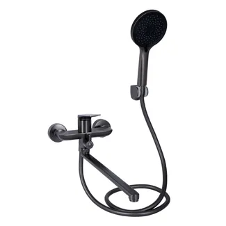 Змішувач для ванни Vlasta New, Gunmetal Black PVD (k35) з довгим поворотним виливом та душовим гарнітуром QTVLA260GMB45645 Qtap